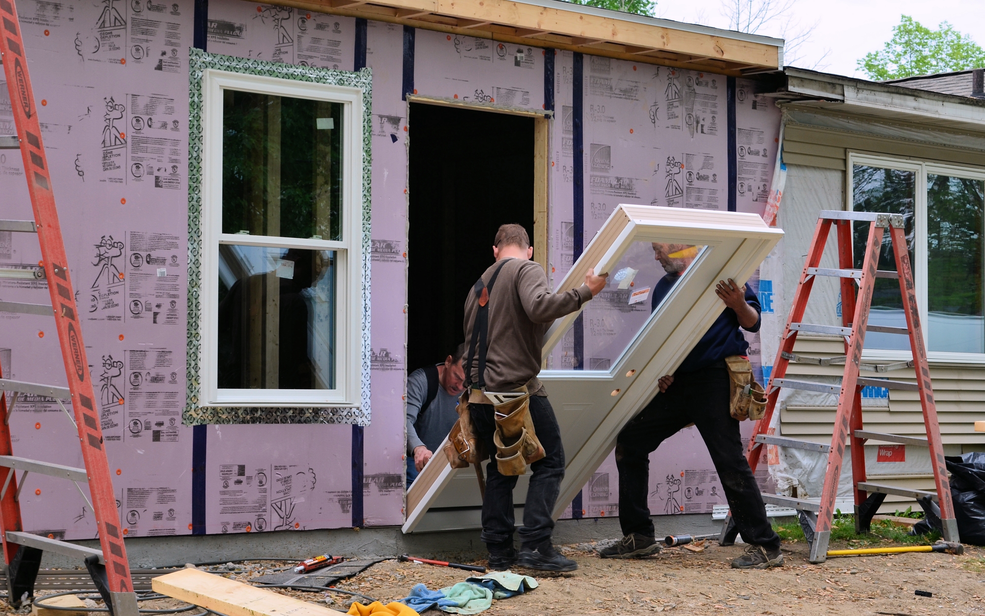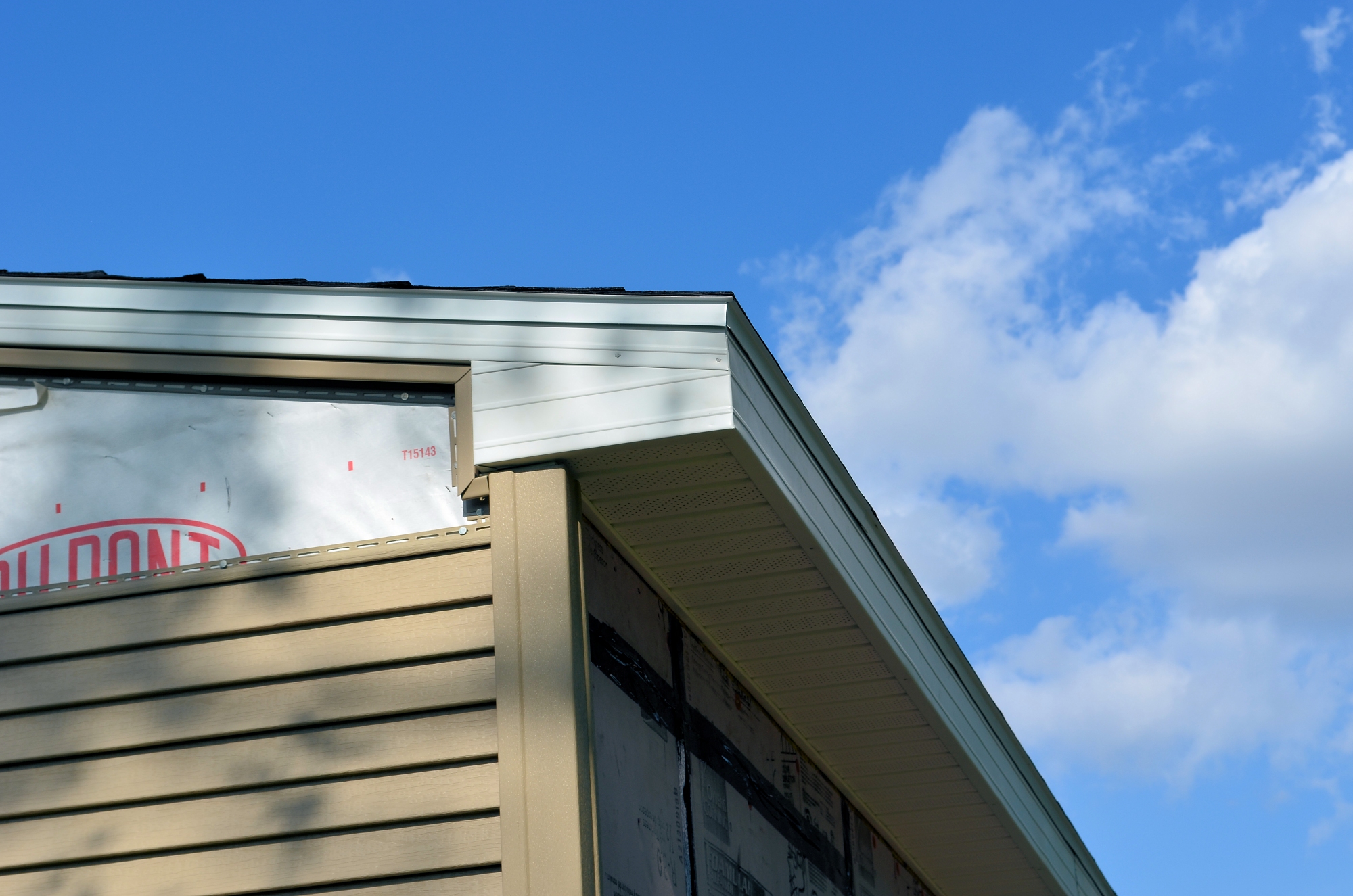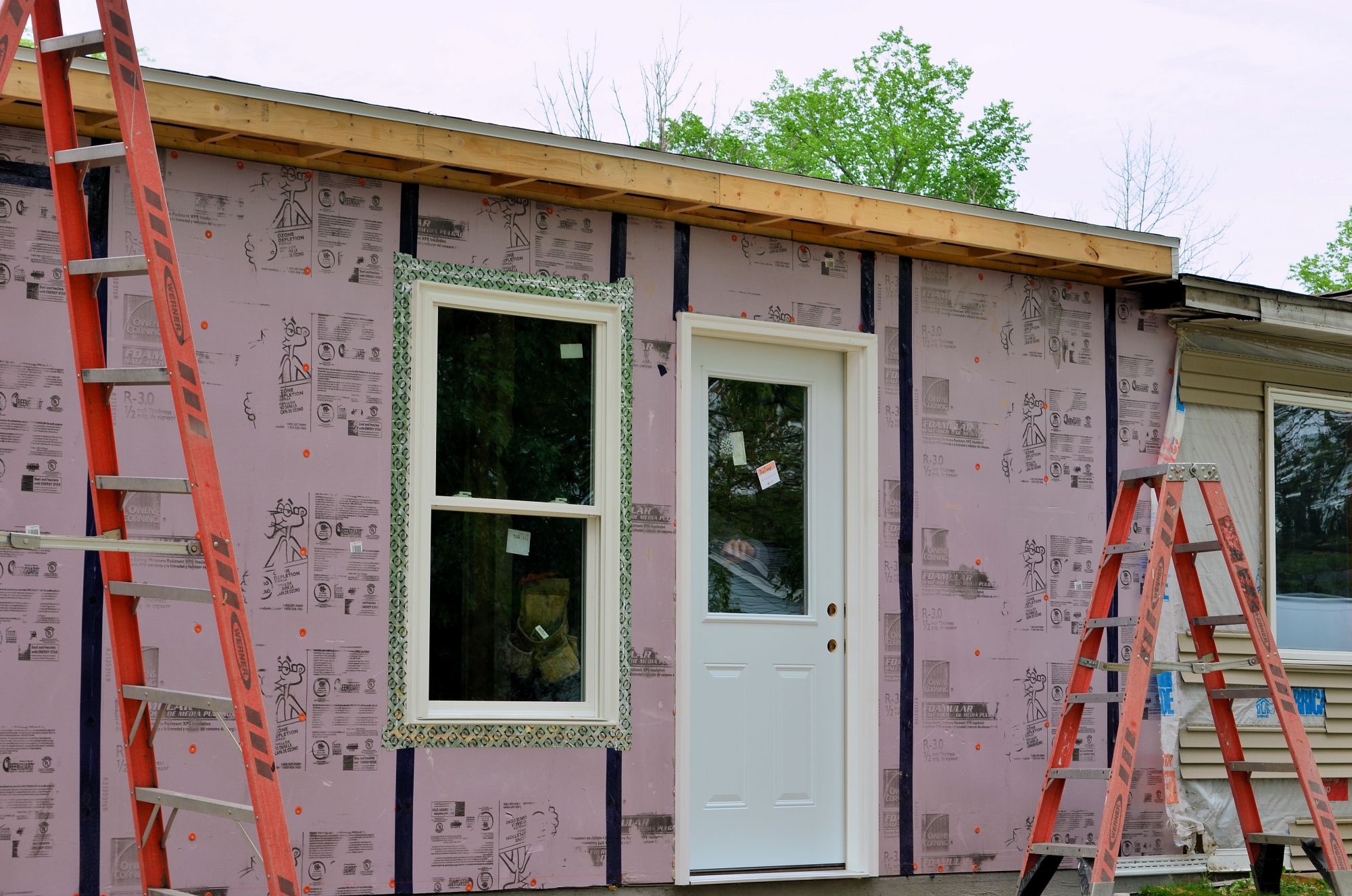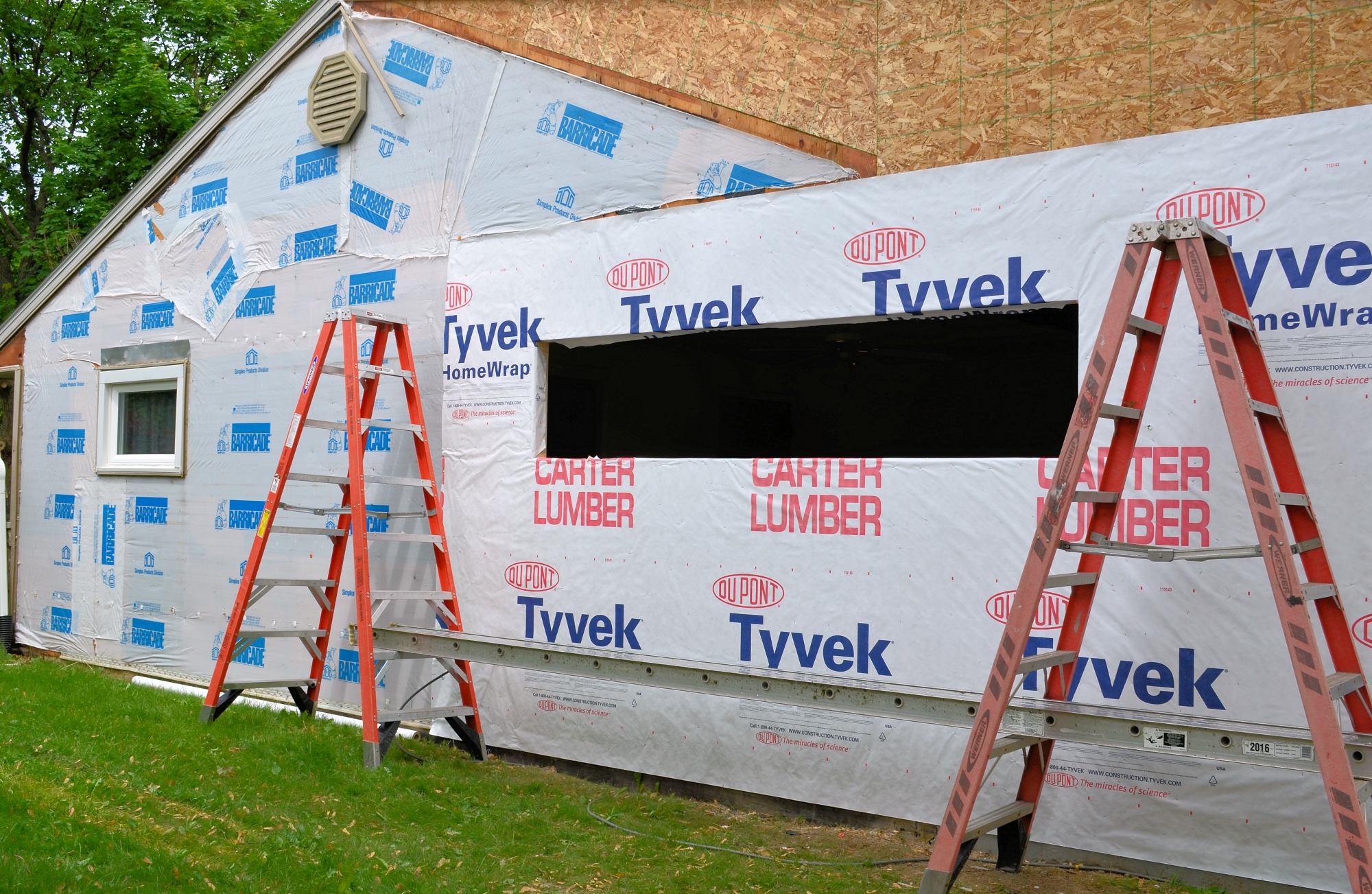 Outside, the crew got about half of the new vinyl siding installed. Naturally, the original siding used on the house was an odd configuration, consisting of three narrow “clapboards” on each panel rather than the more common two wider ones. Not only that, but the original color had, of course, faded slightly over the years. The builder searched far and wide to find a match, and finally succeeded.