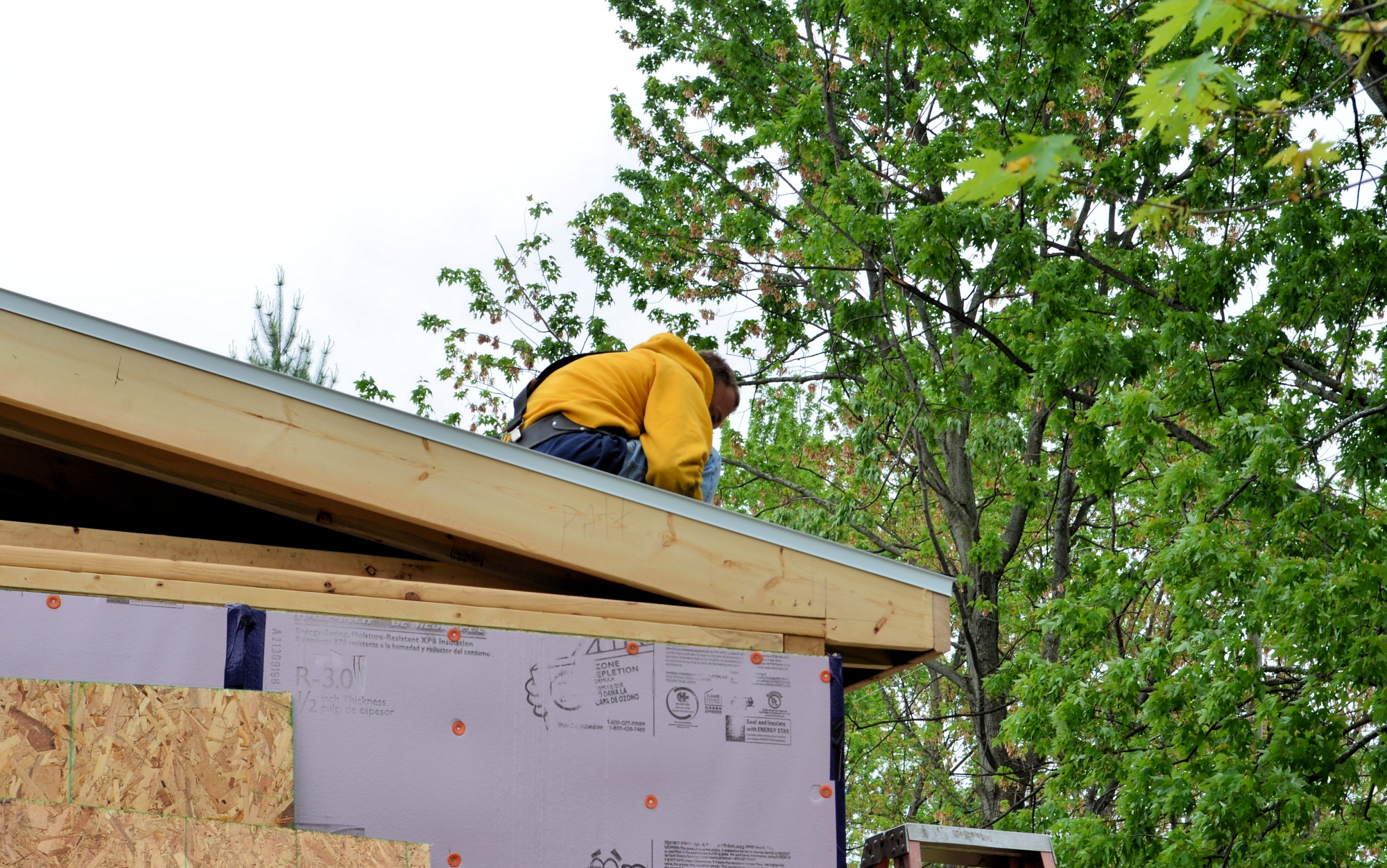 Meanwhile, out in the cold and wind, the crew is putting the first shingles on the new roof.
